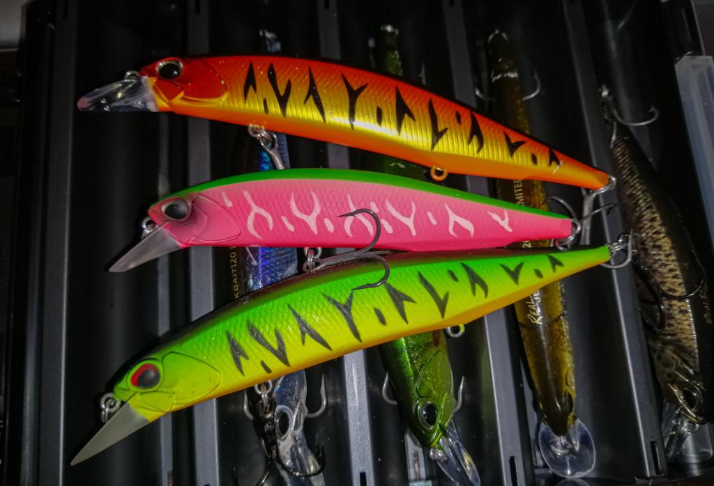 За десерт на щуките винаги им подавам и един по-малък миноул в размер 110. Цвета, който имам го получих като награда в състезание и още с първите хвърляния ми донесе ценен улов за крайното класиране. Този цвят смея да твърдя, че е нещо средно като концепция между ,,Призрачната Уклейка'' и някой от горните натурални цветове. Донесъл ми е успех както в бистра вода и висока осветеност, така и при намалена осветеност.