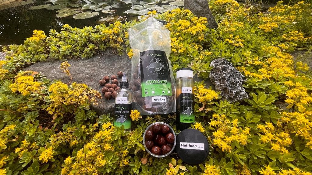 Zakrmil jsem boilisem Natural 2v1, které jsem zalil tekutou játrou a boostrem Victory. Na jeden prut servíruji dvě 20mm kuličky Hot Food a na druhý volím 24mm Oliheň.