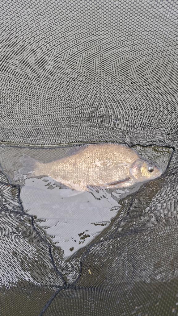 Wrocilem nastepnego dnia, strategia byla taka sama, pogoda dopisala wiatr byl slabszy jak wczoraj przez chmury przebijalo sie slonce a ja zobaczylem swoja szanse na dobry polow. Nie pomylilem sie, sygnalizator przy karpiowce zaczal wydawac pojedyncze dzwieki, ruszylem do wedki , zacialem i po chwili mialem rybe w podbieraku byl to 2 kilowy leszcz, nie tego spodziewalem sie na 20mm pellet ale kazda ryba cieszy.