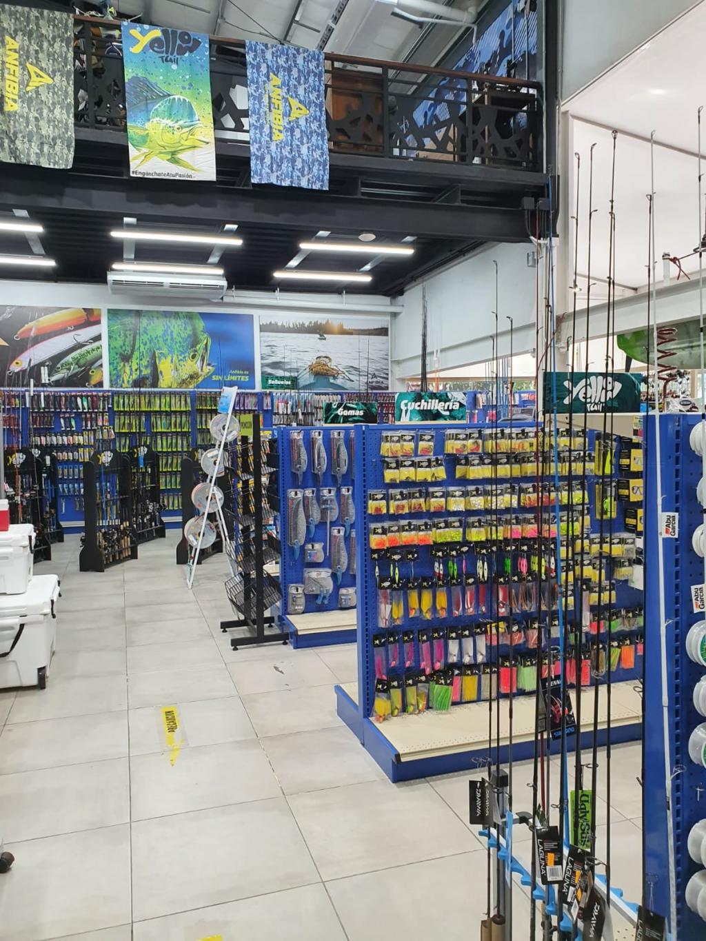 Tienda de artículos para la pesca comercial y deportiva, refacciones para motores de lanchas, accesorios marinos, lanchas de fibra de vidrio deportivas o austeras, químicos para el mantenimiento de las lanchas o yates, artículos de buceo o snorkel.