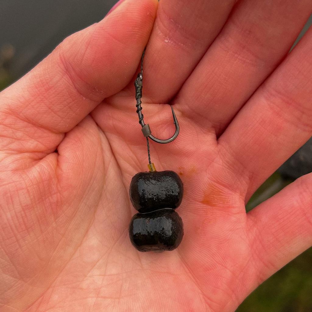 Na włosie zagościły 2 waftersy o moim ulubionym w ostatnim czasie smaku - belachan, czyli sfermentowana krewetka. Kulki mają specyficzny zapach, jednak karpie go po prostu kochają. To jedna z moich ulkubionych przynęt na zimne wody. Kulki znajdują się w opakowaniu z boosterem, dzięki czemu ich zapach jest naprawdę intesnwyny a w wodzie szybko zaczyna się on rozchodzić wabiąc karpie.