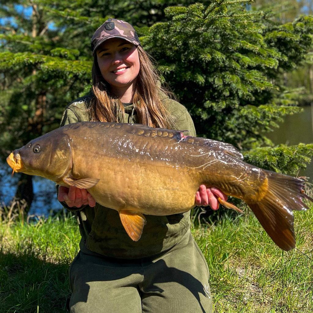 Moja technika i taktyka okazały się dobrym wyborem. Po kilku godzinach nad wodą usłyszałam mój wymarzony dźwięk - mój sygnalizator zagrał jak szalony. Po kilku minutowym holu na brzegu zawitał przepiękny karp, który miał w niedalekiej przeszłości spotkanie z masywnym drapieżnikiem, całe szczęście udało mu się uciec. Miał ogromne szczęście, ze trafił na mnie bowiem odkaziłam każdą ranę na jego ciele. Pamiętajcie aby dbać o nasze zdobycze, tak aby do wody trafiały w jak najlepszej kondycji.