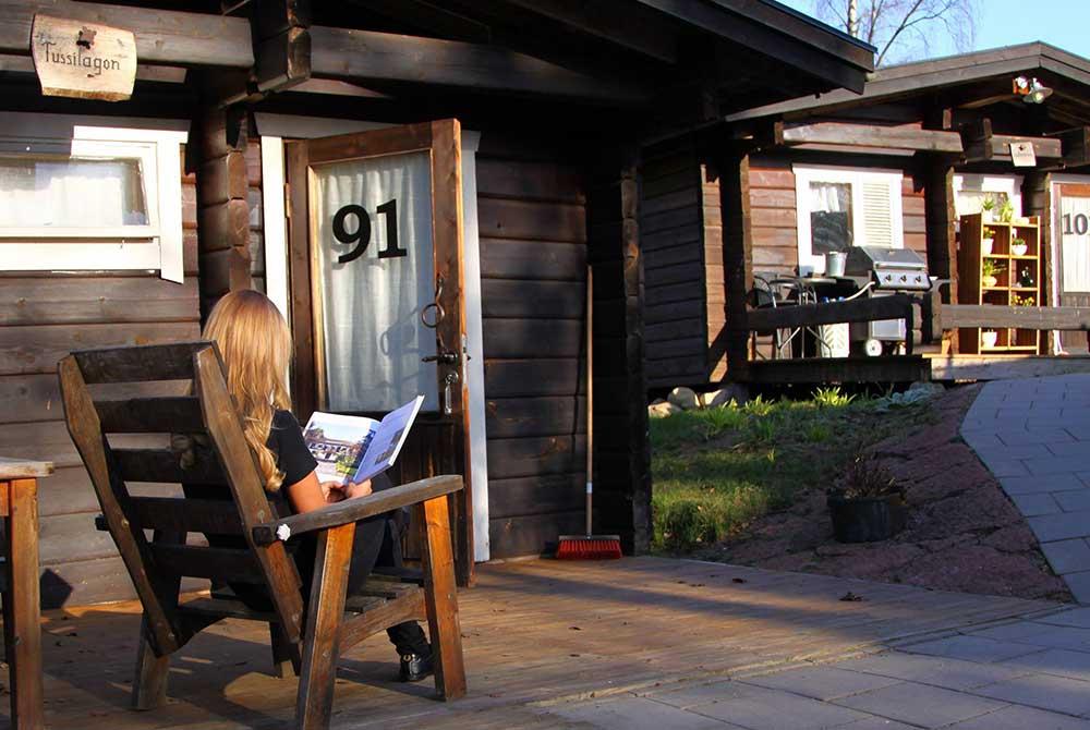 Timmerstugorna är på 65 kvm med 2 dubbelrum (ej våningssäng) stort allrum med TV. Pentry, dusch och WC. Alla stugor har egen altan.